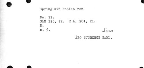 //// Spring min snälla ren No. 21. //// SLS 126, 22. R 6, 201, 21. //// R. S * ° * //// ÅBO SJÖBERGS SAML. //// % ////