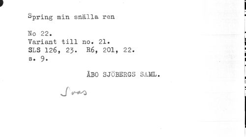 //// ! //// Spring min snälla ren Ho 22. //// Variant till no. 21. SLS 126, 23. R6, 201, 22. s. 9. //// ¦ //// ÅBO SJÖBERGS SAML. J L ////