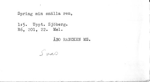 //// • j" Spring min snälla ren, //// 1:5* Uppt. Sjöberg. R6, 201, 22. Mel. //// ÅBO RÅNCKKN MS. //// J) l^L/O //// i //// i //// ___ _ ___ _ __ ___ j ////