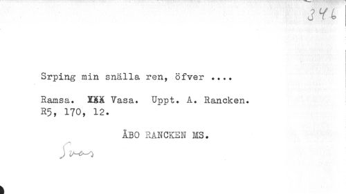 //// 3 Y-4 //// l //// Srping min snälla ren, öfver ? //// ... //// Ramsa. XXX Vasa. Upp t. A. Rancken. //// R5, 170, 12. //// ÅBO RANCKEN MS. //// ) U-^ //// k ////