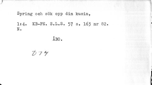 //// Spring och sök opp din kusin, //// f= b //// 1:4. KB-PE. S.L.S. 57 s. I6j nr 82. //// H. I //// i i //// ÅBO. //// v //// 2> 7 y ////