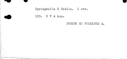 //// Springkull SL Ql Biälla. 1 str. 193- SVA kop. //// DYBECK MS FOLKLORE 4. //// N. ////
