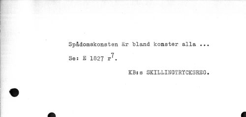 //// / //// Spådomskonsten är bland konster alla ... Se: E 1827 r7. //// KBss SKILLINGTRYCKSRSG. A M ////