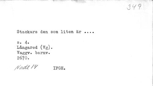 //// vm //// Stackars den som liten är ... s. 4* //// Långared (Vg). Yaggv. barnv. 2670. //// /ifade ipgh. ////