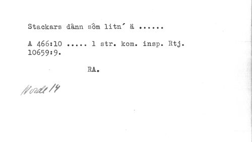 //// Stackars dänn som litn' ä... //// Å 466:10 ... 1 str. kom. insp. Et j. 10659:9. //// RÅ. //// 1 //// / //// » ////