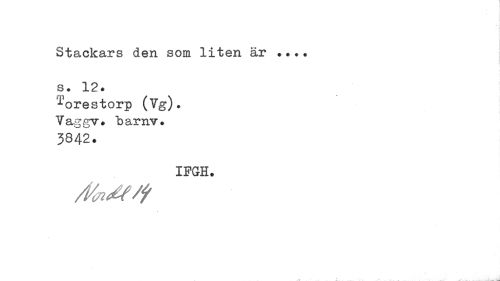 //// Stackars den som liten är ... s. 12. //// ^'orestorp (Vg). Vaggv. barnv. //// 3842. //// IFGH. //// /tfaéf/9 ////