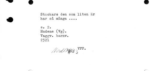 //// Stackars den som liten är //// har så, många ?. •. //// s. 2. //// Hudene (Vg)» Vaggv» barnv» 2321 //// /"—'"v ////