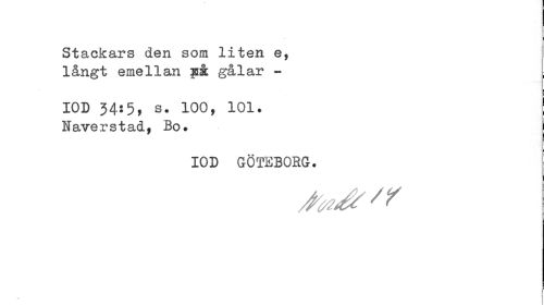 //// r //// Stackars den som liten e, //// långt emellan på gålar - | //// IOD 34s5f s. 100, 101. Naverstad, Bo. //// [ //// IOD GÖTSBORG. //// ( ////