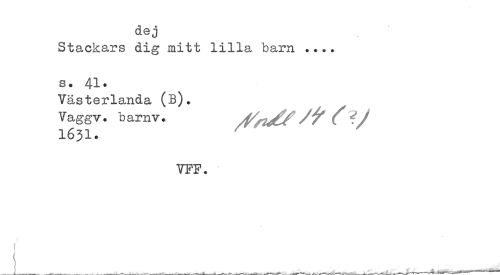 //// dej //// Stackars dig mitt lilla barn //// s. 41- //// Västerlanda (b). //// Vaggv. barnv. ^{ //// 1631* //// VPF. //// t //// j ////