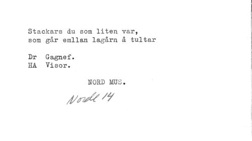 //// Stackars du som liten var, som går emllan lagårn å tultar //// Dr Gagnef. HA Visor. //// NORD MUS. //// 'V //// i I i //// 1 ////