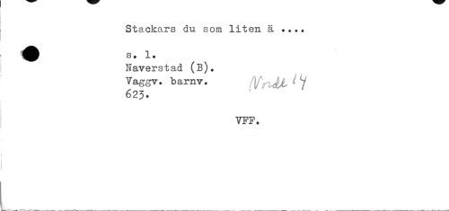 //// Stackars du som liten ä ... 1 • //// Naverstad (B). //// Vaggv. barnv. >]fnJÅ ^ V //// 623. //// VFF. ////
