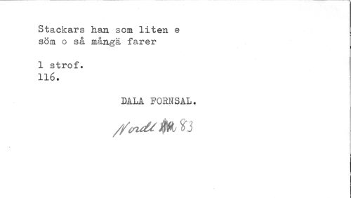 //// Stackars han som liten e //// söm o så mångä farer //// 1 strof. 116. //// DALA FORNSAL. ////