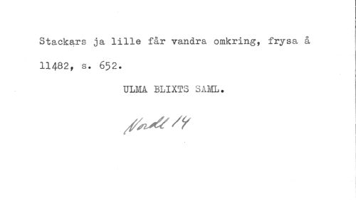 //// i //// Stackars ja lille får vandra omkring, frysa å 11482, s. 652. //// ; //// ULMA. BLIXTS SAML. ////