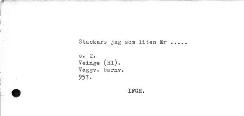 //// Stackars jag som liten är s ? 2 • //// Veinge (Hl). Vaggv. barnv. //// 957- //// A IFGH. ////