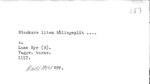 //// m //// i //// Stackars liten hulingeplåt ... s. //// Lane Ryr (b). Vaggv. barnv. 1157. //// vff . | ////