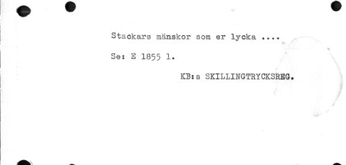 //// Stackars mänskor som er lycka ... Se: S 1855 1. //// KB:s SKILLINGTRYCKSREG. ////