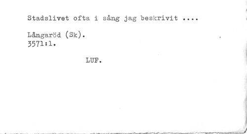 //// Stadslivet ofta i sång jag beskrivit Långaröd (Sk). //// 3571:1- //// i //// LUF. //// I ////