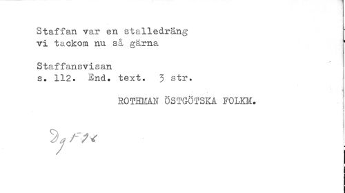 //// Staffan var en stalledräng vi tackom nu så gärna //// Staffansvisan //// s. 112. End. text. 3 str. //// ROTHMÅH ÖSTGÖTSKA FOLKM. //// /-v* ////
