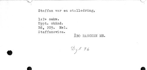 //// Staffan var en stalledräng, //// 1:2+ omkv. Uppt. okänd. H6f 209. Mel. Staffansvisa. //// ÅBO RANCKEN MS. ////