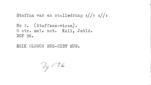 //// Staffan var en stalledräng ://: ://: //// Nr 2. (Staffans-visan) . 8 str. mel» not. Kall, Jmtld. //// BGF 96. //// ERIK OLSSON MUS-HlST MUS. //// ^ I ////