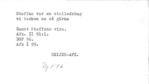 //// Staffan var en stalledräng vi tackom nu så gärna //// Sankt Staffans visa. Afz. II 91:1. DGF 96. Afz I 99. //// » * //// GEIJER-AFZ. fy /-"/ ^ ////