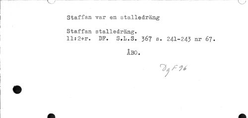 //// Staffan Tar en stalledräng Staffan stalledräng. //// 11:2+r. BF. 3.L.S. 367 s. 241-243 nr 67. //// ÅBO. ////
