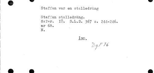//// Staffan var en stalledräng Staffan stalledräng. //// 8:2+r. IÖ. S.L.S. 367 s. 244-246. //// nr 68. //// V. //// åbo. ////