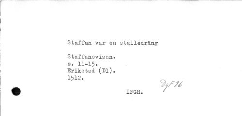 //// Staffan var en stalledräng //// Staffansvisan. //// Erikstad (Dl). 1512. //// ^ffU //// IFGH. ////