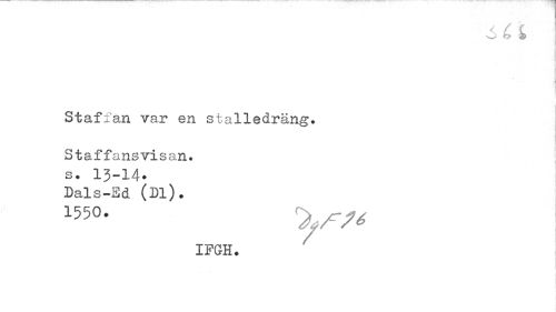 //// St 4 //// i //// Staffan var en stalledräng. //// S t a ffans vi s an? s. 13-14. Dals-Ed (Dl). //// IFGH. //// 1 ////