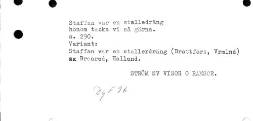 //// Staffan var en stalledräng ^^ honom tacka vi så gärna. //// Variants //// Staffan var en stailerdräng (Brattfors, Vrmlnd) i&x Breared, Halland. //// STRÖM SV VISOR 0 RAMSOR. //// Q7 /=" H ////