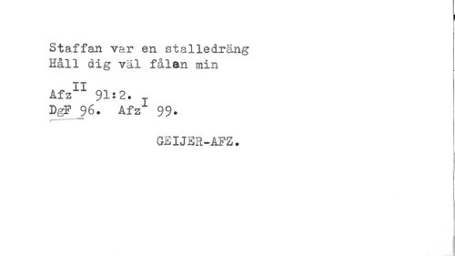 //// I //// Staffan V8.2? GH S talledräng Håll dig väl fålen min //// i //// Åfz11 91:2. //// DgF 96. Åfz 99. //// GEIJEH-AFZ. //// t ^ ////