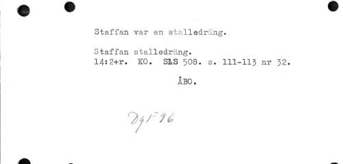 //// Staffan var en stalledräng. Staffan stalledräng. //// 14:2+r. KO. SILS 508. s. 111-113 nr 32. //// ÅBO. ////