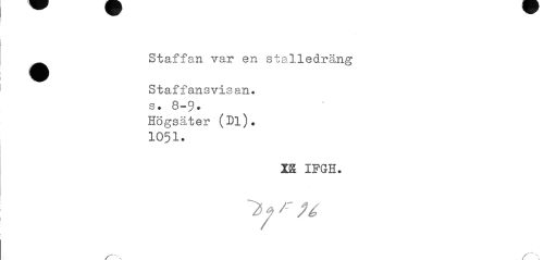 //// ^^ Staffan var en stalledräng //// Staffansvisan. //// s. 8-9. //// Högsäter (Dl). 1051. //// IS IFGH. //// n ////
