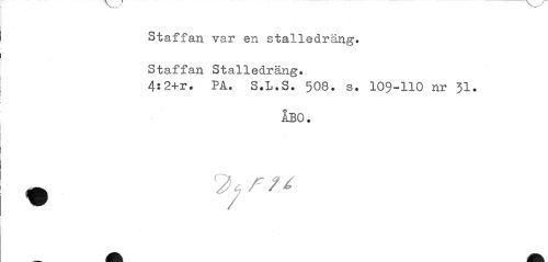 //// Staffan var en stalledräng. Staffan Stalledräng. //// 4:2+r# PA. S.L.S. 508. s. 109-110 nr 31. //// ÅBO. ////
