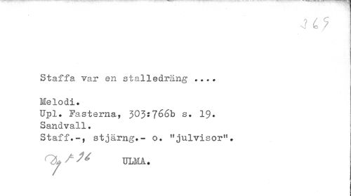 //// I //// Staffa var en stalledräng Melodi. //// Upl. Fasterns, 303:766b s. 19* Sandvall• //// Staff. stjärng.- o. "julvisor". i //// Q^ ^ M TJLMÅ. ////