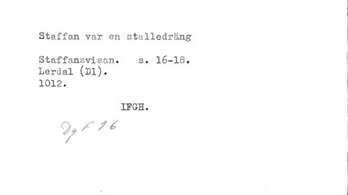 //// Staffan var en stalledräng //// i //// i i //// Staffansvisan. s. 16-18. : //// lerdal (Dl). 1012. //// i //// { //// IFGH. //// I //// I 1 //// / //// \ ////
