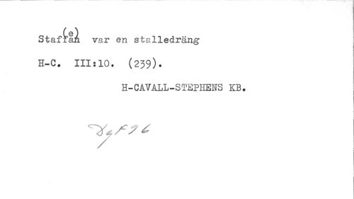 //// Staffli rar en stalledräng H-G. 111:10. (239). //// H-CAVALL-STEPHENS KB. //// 1 ////