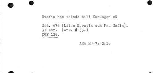 //// Stafia hon talade till Konungen så //// Sid. 676 (Liten Kerstin och Fru Sofia). 31 str. (Arw. X 53») DG-F 126. //// ÅR¥ MS Ys 2:1. ////