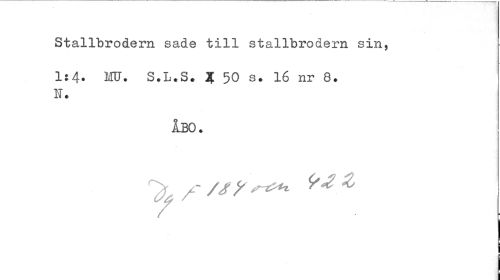 //// Stallbrodern sade till stallbrodern sin, ¦ //// - //// 1:4» MU. S.L.S. 2 50 s. lé nr 8. //// IT. //// ÅBO. //// /sy ^^ ^ v //// \ ////