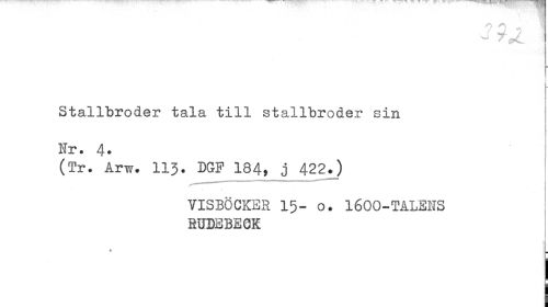 //// ? 2. o //// Stallbroder tala till stallbroder sin //// Nr. 4. //// (Tr. Arw. 113. DGF 184, j 422.) //// ___ < //// VISBÖCKER 15- o. 1600-TALBHS RUDEBECK //// » ////
