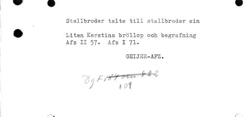 //// Stallbroder talte till stallbroder sin //// i //// ^^ Liten Kerstins bröllop och begrafning //// Af z II 57« Afz I 71. //// GEIJSR-AFZ. //// / f ////