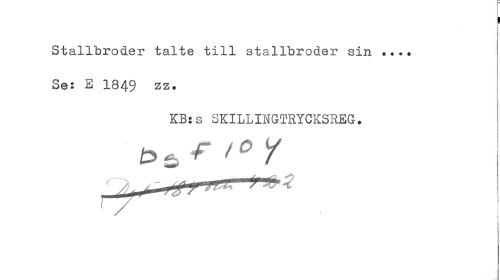 //// fl //// Stallbroder talte till stallbroder sin ... //// Se: E 1849 zz. //// i //// KB:s SKILLINGTRYCKSREG. //// ös^ t° Y ////