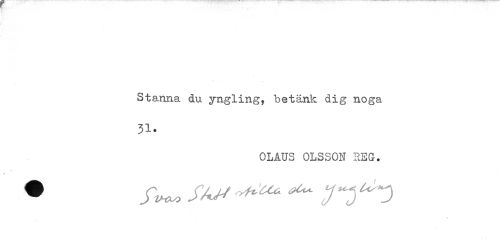//// Stanna du yngling, betänk dig noga 31. //// OLAUS OLSSON REG. //// K //// é //// • fp*» fä' ////