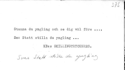 //// m //// Stanna du yngling och se dig väl före • Ses Statt stilla du yngling //// KB:s SKILLINGTRYCKSREG• //// ¦ //// JWo SAlM orti^ j ////