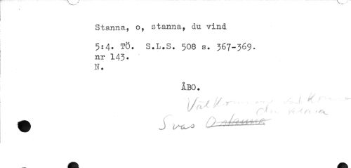 //// Stanna, o, stanna, du vind //// 5:4. TÖ. S.L.S. 508 s. 367-369. nr 143' //// S. //// ÅBO. //// ^ / .. * * 4.*1 A / i »A ////