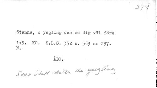 //// ¦ //// Stanna, o yngling och se dig väl före //// 1:5. KO. S.L.S. 552 s. 563 nr 237. n. //// ÅBO. t ////
