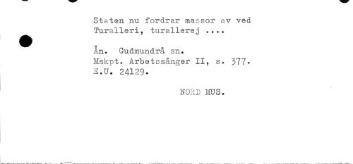 //// Staten nu fordrar massor av ved Turalleri, turallerej //// An. Gudmundra S XX • //// Mskpt. Arbetssånger II, s. 377» E.U. 24129. //// HORD MUS. ////