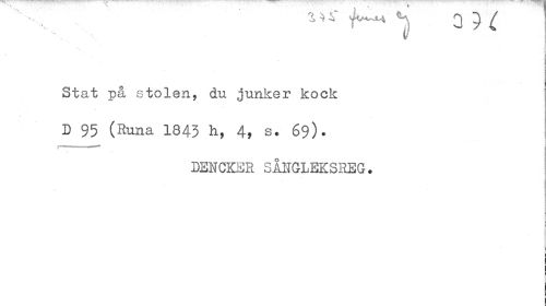 //// *** t™*' i a 9 4 //// U //// ¦ //// Stat på stolen, du junker kock //// D 95 (Runa 1845 h, 4, s. 69). //// rm ¦ m //// DENCKER SÅ1IGLEKSREG. ////