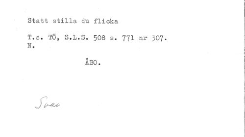 //// Statt stilla du flicka //// T.s. TÖ, S.L.S. 508 s. 771 nr 307. //// H. ; //// ÅBO. ////