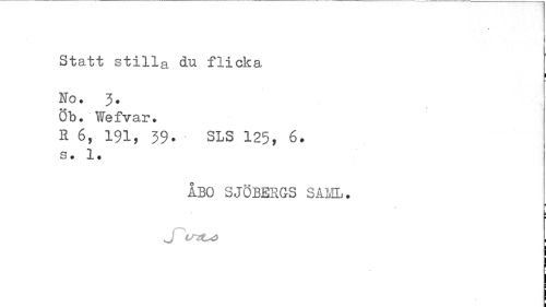//// Statt stilla åu flicka //// i //// lo v 3. Öb#'Wefvar» //// E 6, 191, 39- • SLS 125, 6. //// 3 m x « //// ÅBO SJÖBERGS SAML. //// I ////
